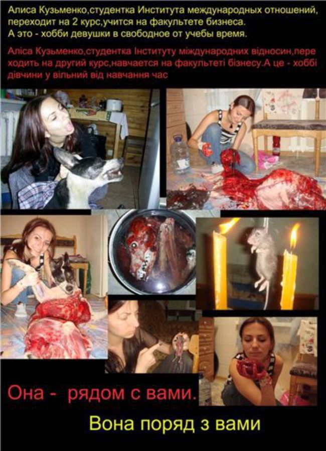 ウクライナの獣医学生、「アリサ・クズメンコ」が自らのFacebook上にアップした「犬の写真」。モザイク入り、詳細は以下から。[8]images