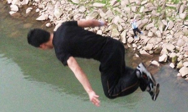 gif_animation 中国・四川省にて、パルクールで40メートルの高さから川へ飛び込んだ男が首の骨を折り死亡したとの事。男は友人と賭けをしており、四川省東部を流れる川、沱江へのジャンプが人生最後のジャンプとなった。写真はおそらく友人が撮影していたもの。