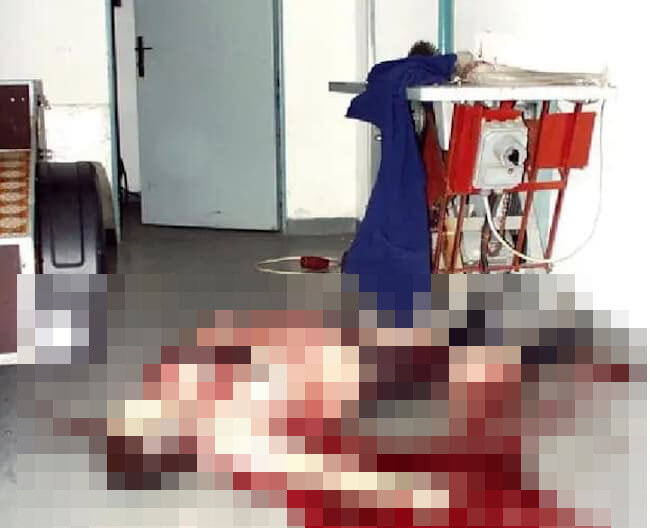 とある小さな工場で、電動丸ノコで作業してたはずの女性作業員が「エゲツナイ姿」になり発見される衝撃画像。理由は不明だが、この66歳の女性作業員は自殺を図ったとみられる。喉は酷く裂かれ、死因は失血死であった。