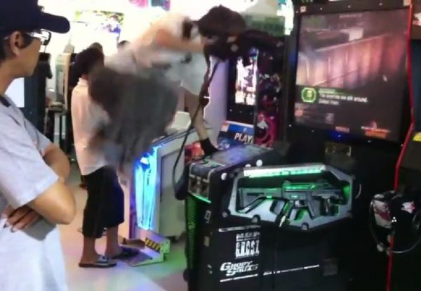 gif_animation おそらくは夫婦であろう2人の別れ話。その数秒後、たまたま通りかかったトラックに飛び込んで自殺する男性。20秒ほどから。