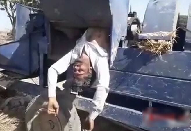 gif_animation インドにて、巨大な穀物粉砕機に吸い込まれた農家の姿がマジで洒落にならん…。上半身はそのままの姿だが、その ”裏側” は親族らが泣き叫ぶほど悲惨な状態であった。もちろん、即死。