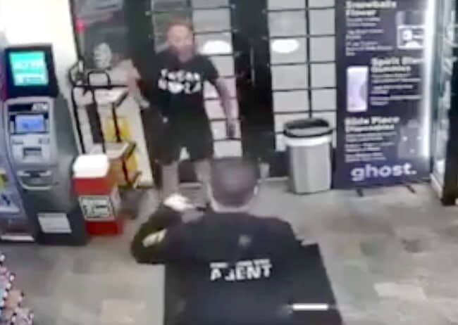 gif_animation アメリカで、撃つ勇気もないのに銃を取り出してはいけない理由・・・。とあるショップで警備員と揉めたチンピラが銃を取り出し威嚇するも、警備員に容赦なく銃で撃たれ、その後「ショットガンで止めを刺される」という一部始終・監視カメラ映像。