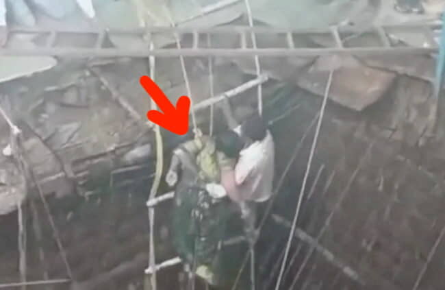 gif_animation インドにて、巨大な穴に落下し瀕死の重傷を負った ”太った女性” が何とか救出されかけるも、重すぎてロープに限界が来た結果 落下、止めを刺される恐怖動画。