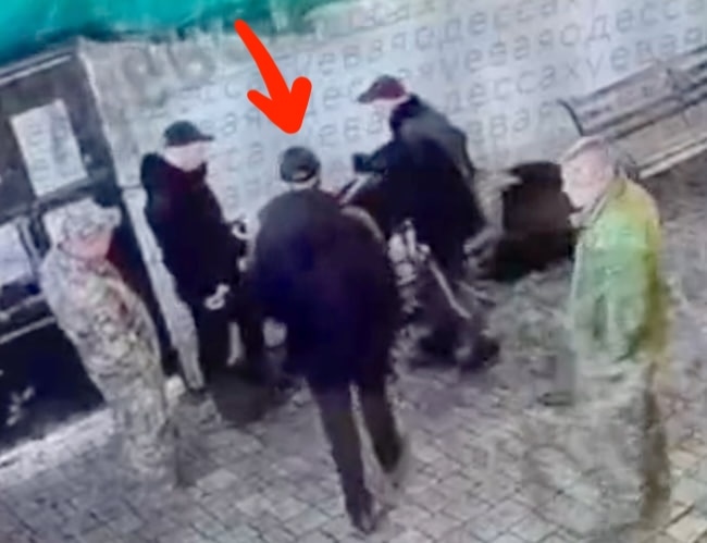 gif_animation ウクライナの街中で、兵士らに強制徴収されそうになった40代男性が「戦場で兵士として殺されるぐらいなら」と ”手榴弾” を爆発させ死亡する衝撃の瞬間…。兵士らも複数重傷を負っている。