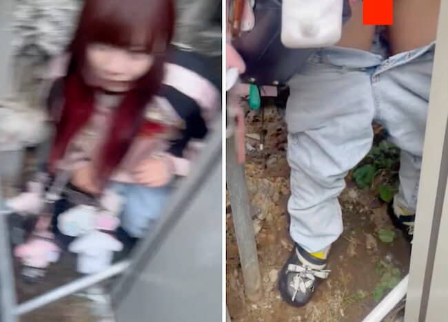 gif_animation 海外にて、街中でマンコ丸出しになり排尿する姿を顔出しで拡散されたトー横女子の動画がなぜかエロすぎるとバズった模様www 相変わらずヤバすぎるトー横周辺。