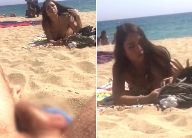 【動画】ヌーディストビーチで美女のナンパに成功した男、その場で大量射精してしまうwww