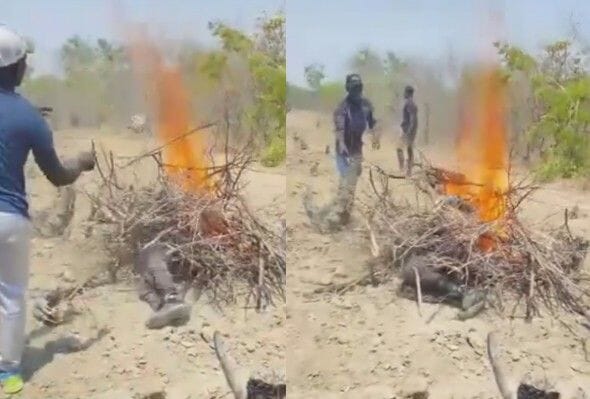 gif_animation ナイジェリアにて、5歳の女の子をレイプした男が、怒り狂った女の子の親族や村人達から「生きたまま燃やされてる」動画が話題になっています。もちろん死亡した。
