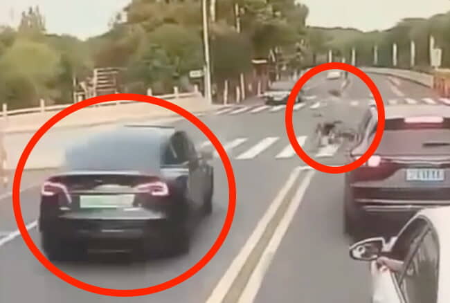 【閲覧注意】テスラ車、自転車の女性を優先し運転手を殺してしまう(動画あり)