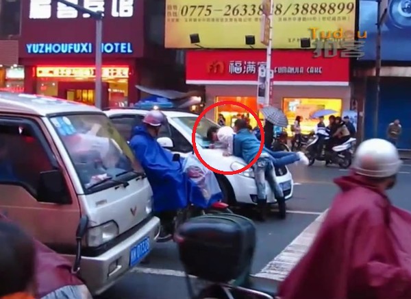 gif_animation 中国にて、お金が欲しい女の子の「身体の使い方」。車にわざとらしくぶつかり、お金を請求する ”当たり屋” 手法。